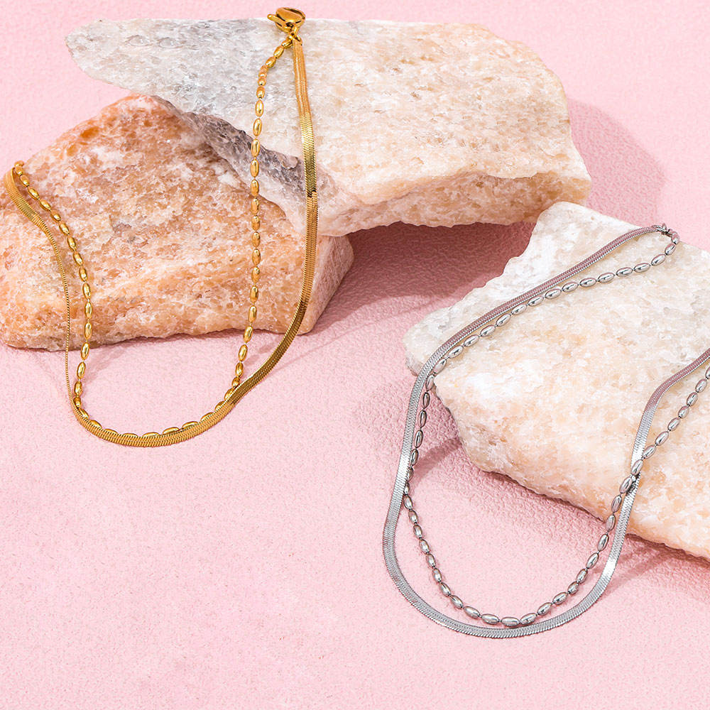 Double-Layer Bead Snake Chain Anklet | 18K Gold Plated